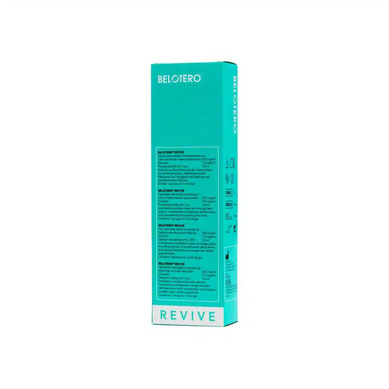 BELOTERO® REVIVE is an injectable skin revitalizer combining 20 mg/mL of cross-linked sodium hyaluronate with 17.5 mg/mL of glycerol, designed to treat early signs of photodamaged facial skin. Utilizing Cohesive Polydensified Matrix (CPM®) technology, it integrates smoothly into the dermis, enhancing hydration, elasticity, and firmness while reducing superficial fine lines and skin roughness.