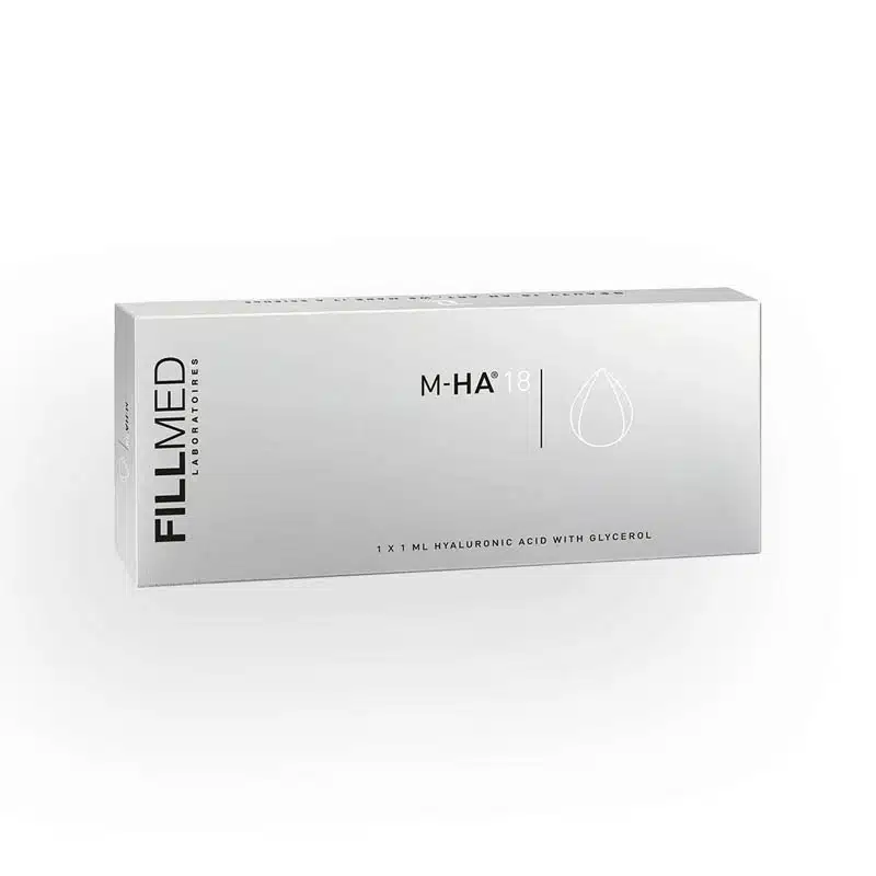 This Fillmed product consists of 18mg/ml hyaluronic acid and the hydrating agent glycerol (20mg/ml). Together, these active ingredients provide the Fillmed product with hydrating qualities to help moisturize aging or dry skin from within. Fillmed M-HA 18 product is clear, colorless, transparent, viscoelastic, isotonic, sterile, and biodegradable. In addition, Fillmed M-HA 18 has antio-xidizing properties. Hyaluronic acid’s water binding property smoothens, stretches, and plumps the skin.