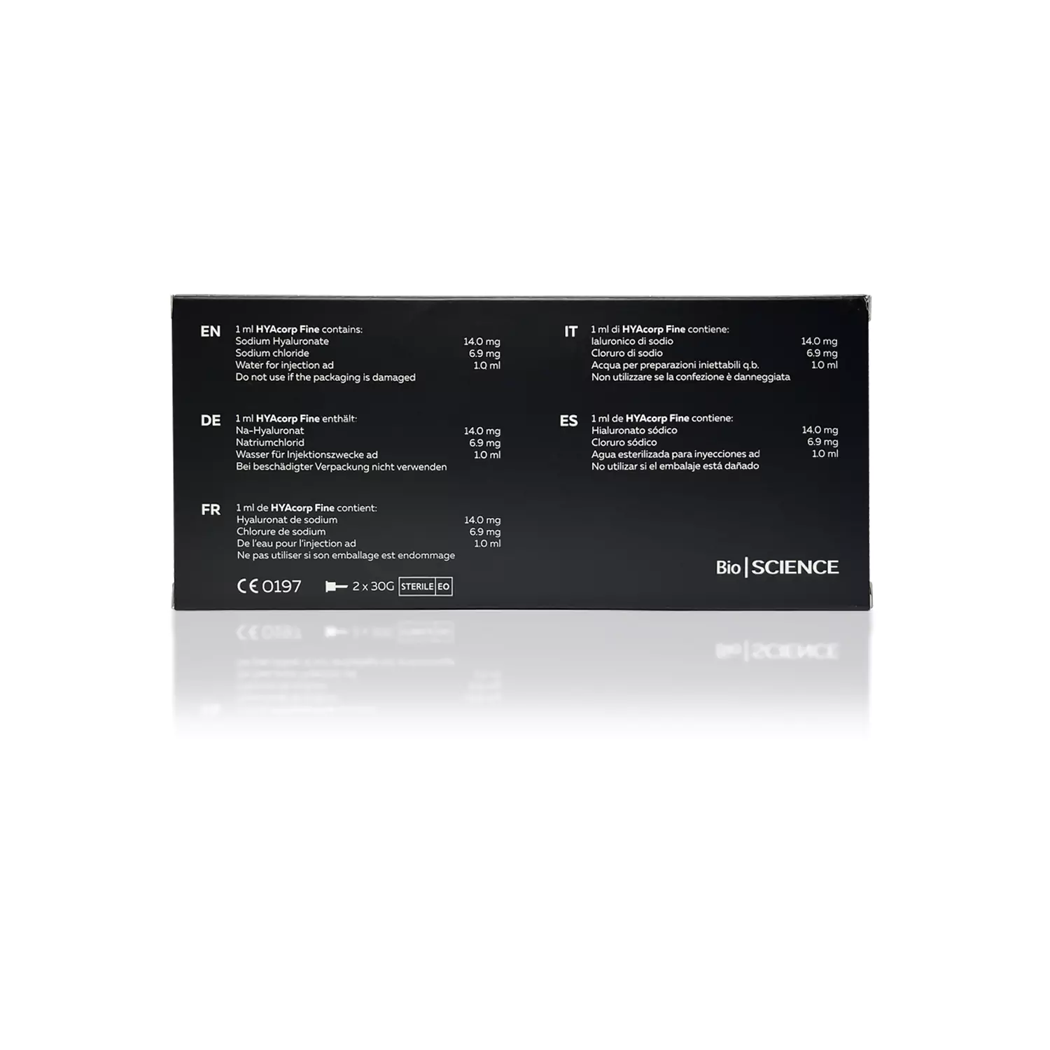 HYACORP FINE® is a resorbable dermal implant developed for aesthetic skin rejuvenation. It contains highly purified hyaluronic acid of non-animal origin produced via biofermentation. Designed to be injected into the mid-dermal layer, the product restores lost hyaluronic acid, improving hydration, elasticity, and skin tone. It is indicated for subtle lifting effects and moisturization of delicate skin areas such as the face, neck, décolleté, and hands. Due to its viscoelastic properties, HYACORP FINE® provides natural-looking, uniform results and is suitable for early signs of skin aging.