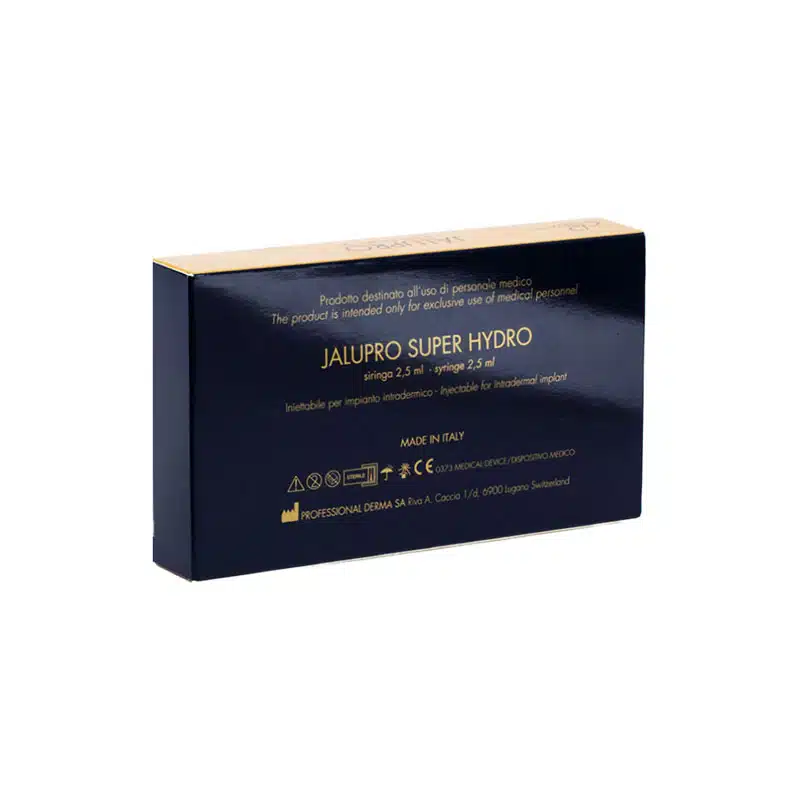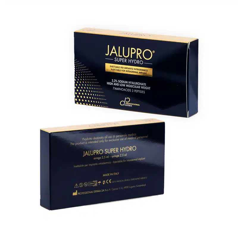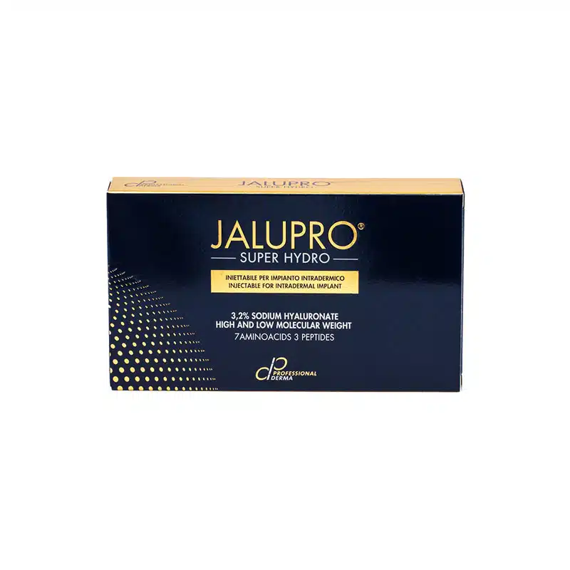 JALUPRO® SUPER HYDRO is an advanced injectable biorevitalization solution designed to provide deep hydration, structural skin support, and collagen stimulation. It combines three types of hyaluronic acid, two peptides (Acetyl Decapeptide-3 and Tripeptide-1), and amino acids to address both superficial and deep dermal layers, improving skin density, tone, and elasticity. This next-generation product goes beyond basic hydration by restoring extracellular matrix integrity, stimulating fibroblasts, and optimizing dermal architecture. It is particularly effective for mature or bioaged skin needing both volumizing hydration and visible tissue regeneration.