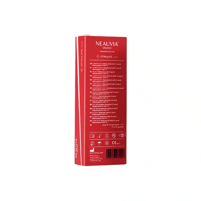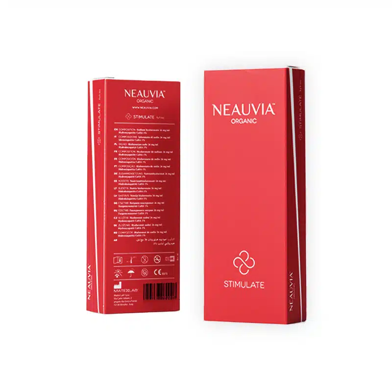 Neauvia™ Organic Stimulate is a unique product thanks to its dual action ,its excellent filling effect and its long-term bio-stimulation. The hydrogel based on hyaluronic acid contained in the product is supplemented with 1% calcium hydroxyapatite which enhances the process of neocollagenesis (wound repair). This product is ideal to treat the lack of volume and density of the skin. The product will instantly fill in tissue deficits by giving the skin the desired shape and volume. Furthermore, it will gradually improve the skin quality, thanks to its bio-stimulating properties.