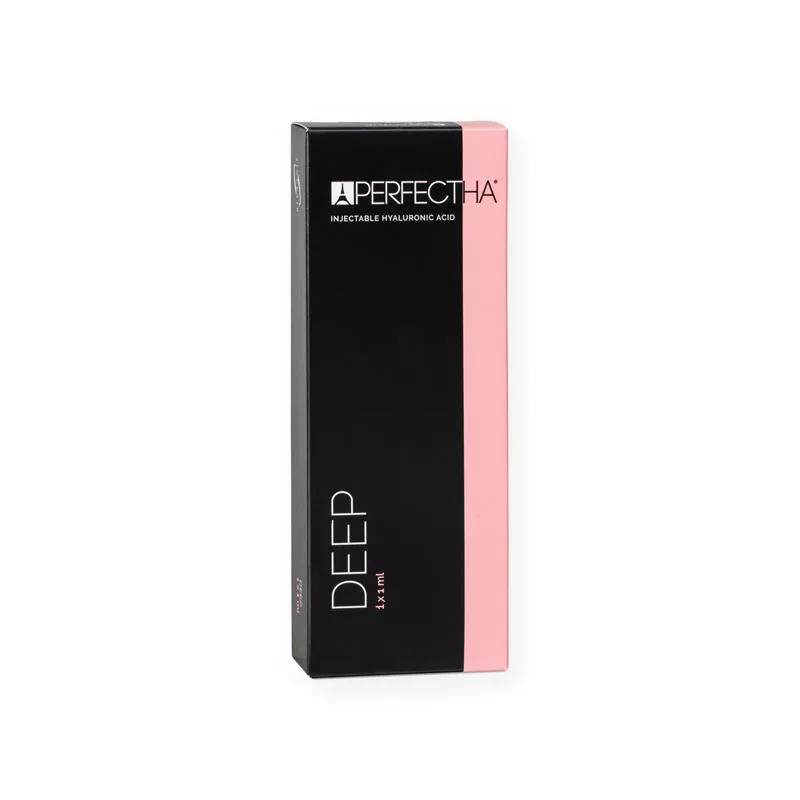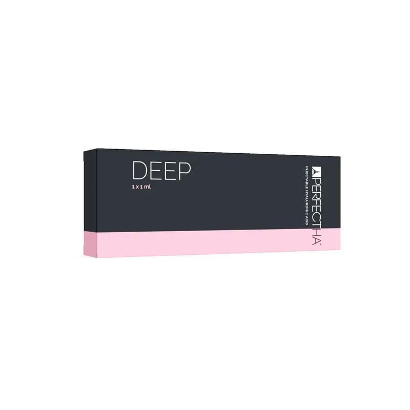 Perfectha® Deep is a cross-linked hyaluronic acid gel filler, formulated to treat deep facial lines and skin depressions. In addition, Perfectha® Deep can be used to increase lip volume, redefine the nose and treat nasolabial folds and marionette lines. With a cross-linking rate of 90%, the gel is injected into the deep dermis (deepest layer of skin) Suitable for filling of deep wrinkles through injection in the medium to deep dermis.
