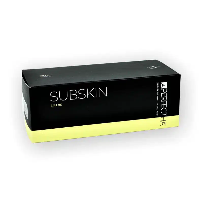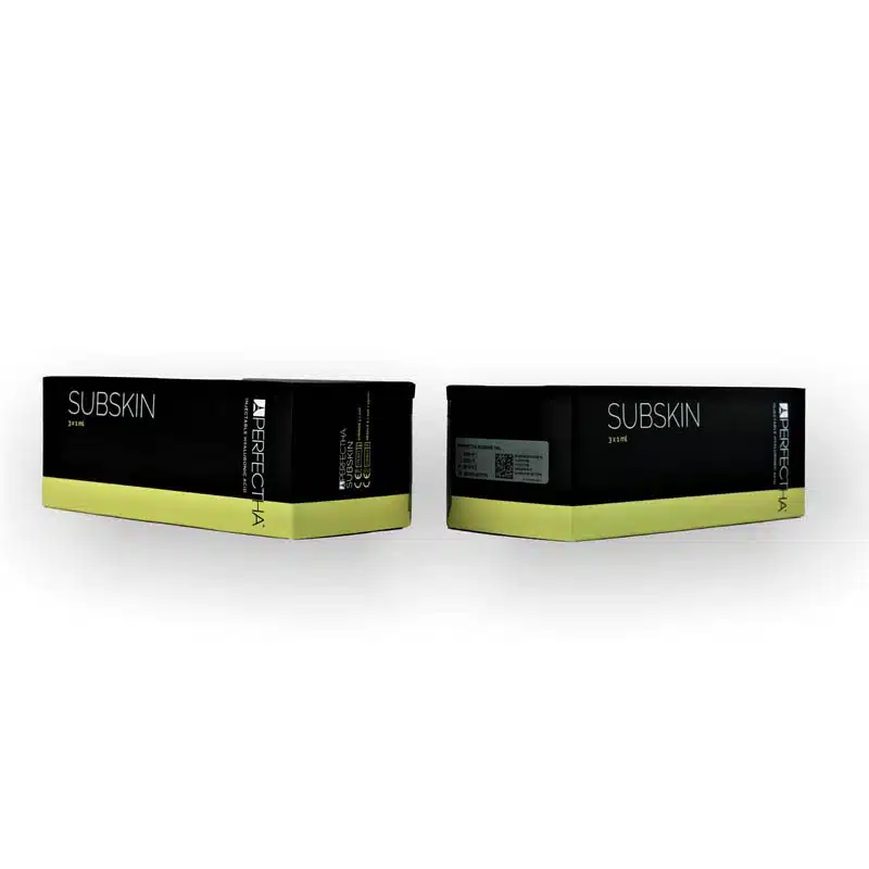 Perfectha® Subskin is an useful injectable dermal filler indicated to redefine facial contours and to volumize malar areas, chin, cheeks, hands and nose. In addition, the hyaluronic acid filler can be used to treat skin depressions and scars. Perfectha® Subskin is ideal to augment and lift upper cheeks and re-contour chins. The crosslinked hyaluronic acid gel has a cross-linking rate of 90% and is intended to be injected into the Subcutaneous dermis. For remodeling, treating age-related conditions, lipoatrophies or facial asymmetries.