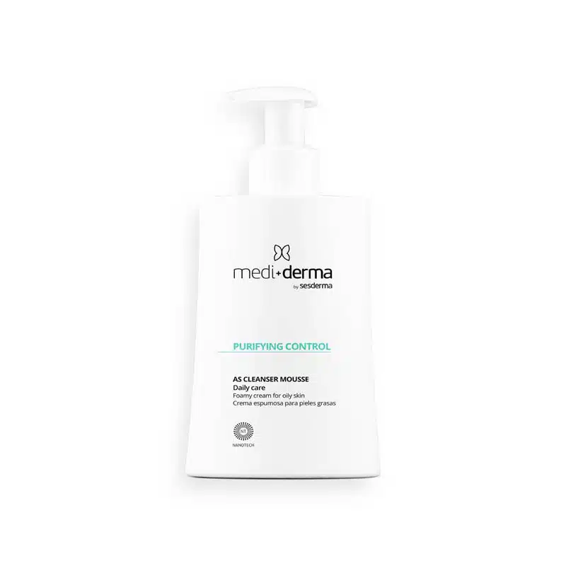 PURIFYING CONTROL AS CLEANSER MOUSE DAILY CARE 200ml is a soap-free, high-tolerance foaming cream designed for daily cleansing of all skin types, especially acne-prone and sensitive skin. Its formula includes plant extracts and antibacterial ingredients that purify the skin without causing irritation, leaving it soft, refreshed, and balanced. The mousse texture gently removes impurities, excess sebum, and environmental residues while respecting the skin’s natural barrier. Enriched with aloe, oats, chamomile, and mimosa, this cleanser calms the skin, while triclosan provides targeted antimicrobial action.