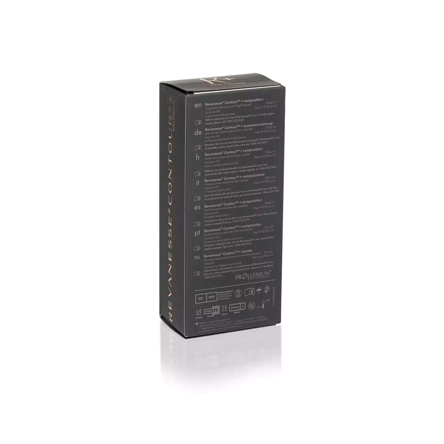 REVANESSE® CONTOUR™ with Lidocaine is a cross-linked hyaluronic acid dermal filler formulated to correct deep facial wrinkles, volume loss, and lipoatrophy. It is designed for intradermal injection by trained medical professionals and incorporates 0.3% lidocaine to minimize pain during treatment. The product is characterized by a 25 mg/mL concentration of hyaluronic acid in phosphate-buffered saline and is cross-linked using BDDE. Its highly viscous gel consistency allows for effective sculpting and facial contouring with a duration of action typically lasting 6–12 months, depending on treatment depth and location.