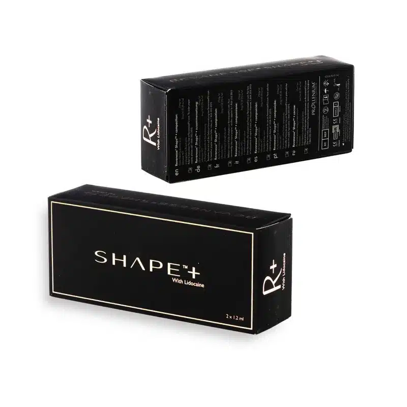 REVANESSE® SHAPE+™ is a cross-linked hyaluronic acid (HA) gel filler with 0.3% lidocaine, designed for the correction of moderate to deep facial wrinkles and lipoatrophy. The product is formulated for intradermal injection, offering a high-viscosity gel structure that provides contouring and volume restoration with long-lasting results. It is supplied in two 1.2 mL prefilled syringes, each paired with sterile 27G needles. The filler is known for its smooth consistency, high purity, and ease of injection. Results typically last 6 to 12 months, depending on treatment depth and injection site. REVANESSE® SHAPE+™ is manufactured by Prollenium Medical Technologies Inc. and is indicated for professional medical use only.