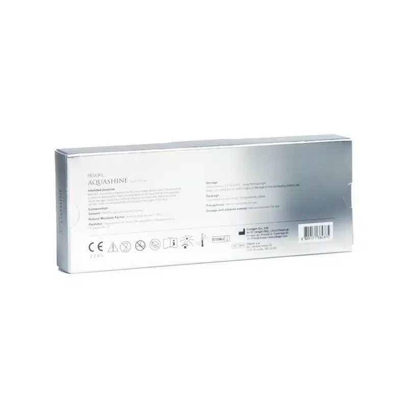 The safety of Revofil Aquashine Soft Filler has been tested and proven in clinical trials. It is made up of natural ingredients and may not even require an allergy-test to be performed. However, there are some potential minor side effects that may occur from injection techniques, including redness and swelling. These side effects should disappear within a day. Examine the enclosed leaflet in the product packaging for more information on side effects.
