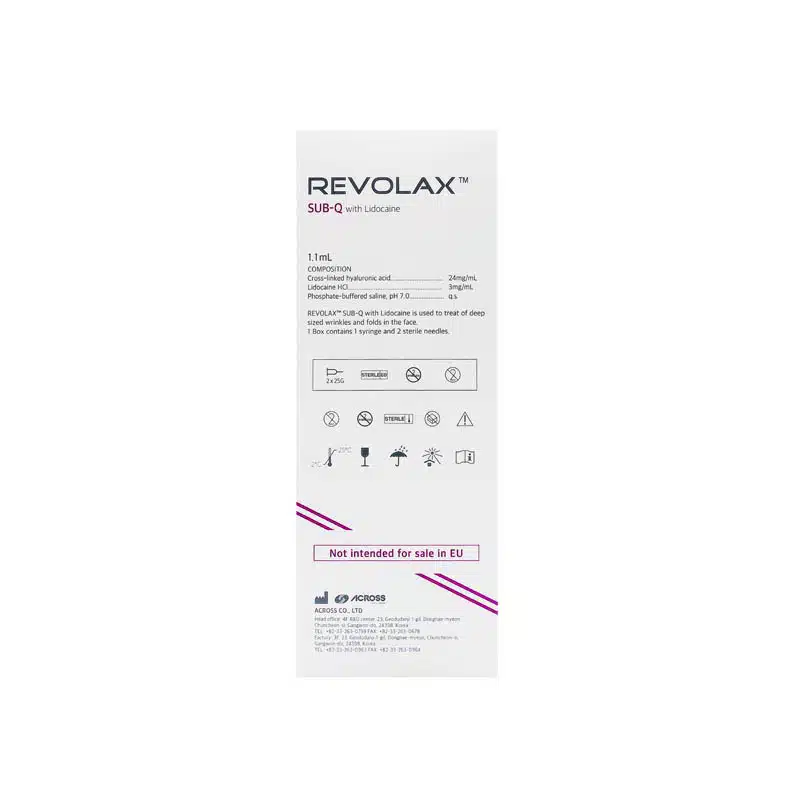 Revolax Sub-Q is indicated for the correction of severe lines and depressions and for soft-tissue augmentation. It is suitable for a variety of applications, including reshaping or adding definition to the chin, cheeks, and nose; correcting very deep and severe wrinkles, lines, and folds (such as laugh lines, forehead lines, and nasolabial folds); and for recreating volume in sunken areas, like cheek hollows.