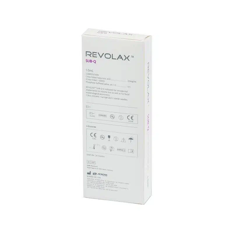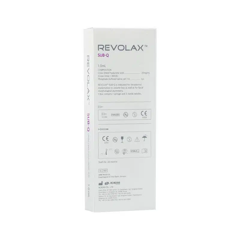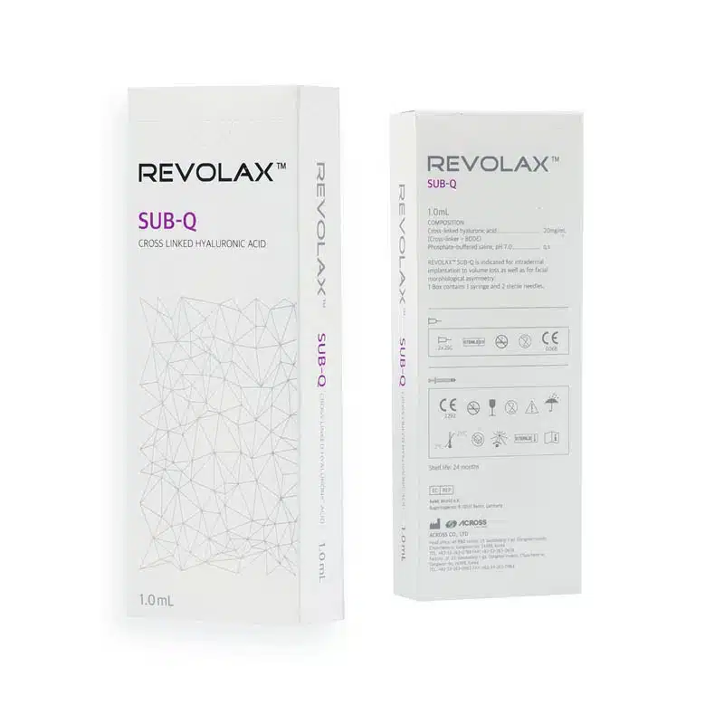 REVOLAX™ Sub-Q has the thickest properties within the product line. With its advanced ability to mould, maintain structure, and longevity – it is recommended for treatment of deep-sized to extremely severe wrinkles including nasolabial. This product also works best for cheek, chin, nose and jawline augmentation that requires a thicker substance to fill.