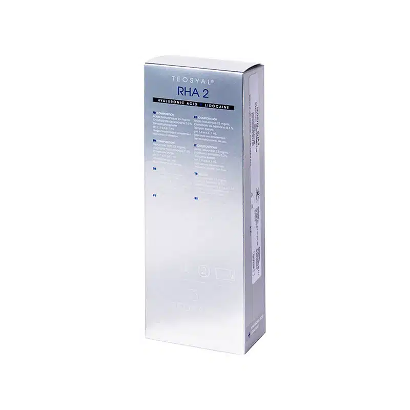 Manufactured by Teoxane Laboratories, TEOSYAL® RHA 2 is made of resilient hyaluronic acid. Its formulation features a mixture of cross-linked non-animal hyaluronic acid and non-modified hyaluronic acid, making it more pure. With this, it more closely mimics natural hyaluronic acid, allowing for more fluid movement and elasticity.