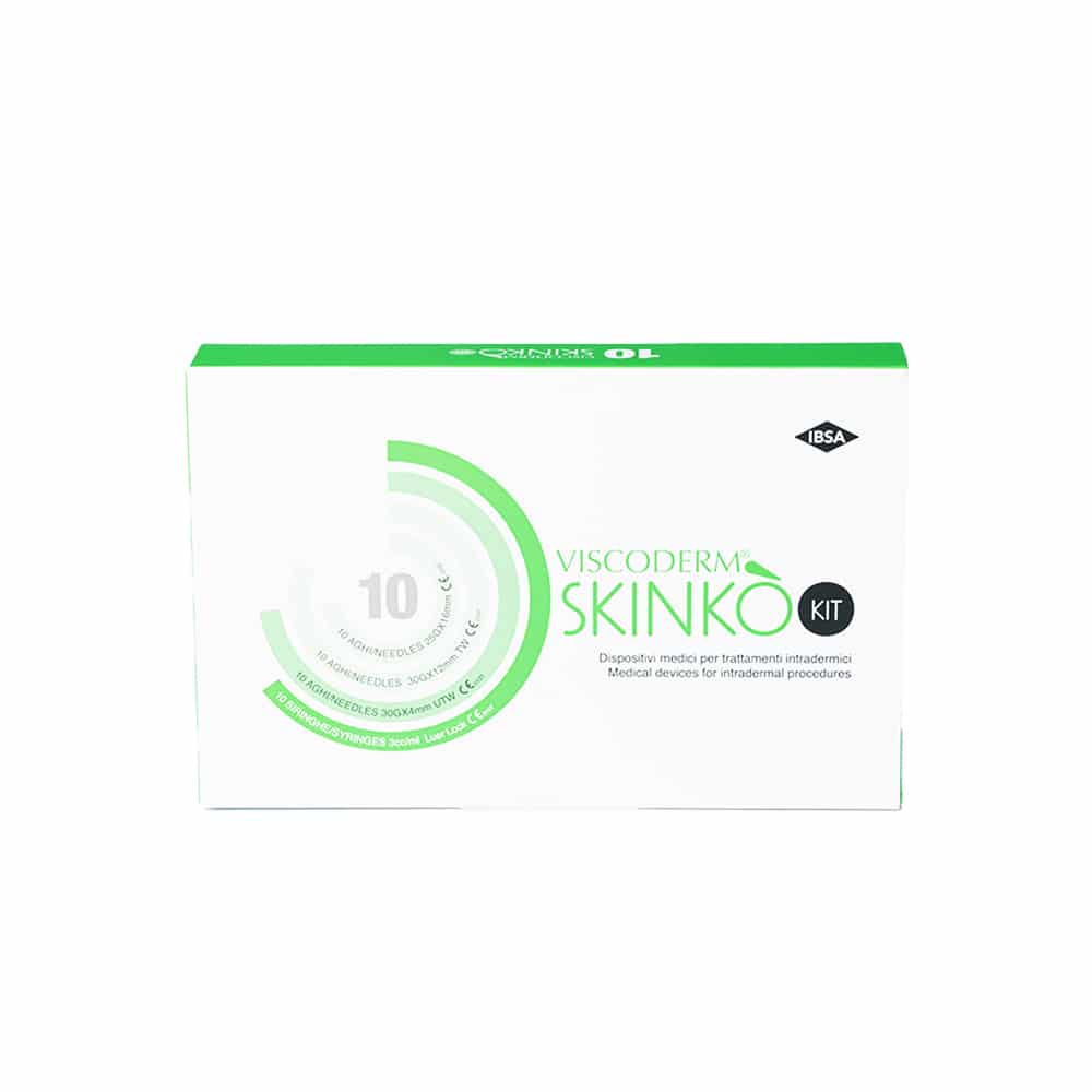 Viscoderm® Skinkò E is an anti-aging complex containing more than 50 dermofunctional elements including non-cross-linked hyaluronic acid, vitamins, minerals and amino acids indicated to maintain and improve cellular trophism of the epidermis and papillary. Viscoderm® Skinkò E is suitable for all skin types, for patients of all ages and from small to large areas of the body. The result is a visibly younger, healthier skin, with increased radiance and homogeneous color. The deep action on fibroblasts makes it possible to maintain skin elasticity, while the superficial action on keratinocytes improves the protective barrier from external damage.