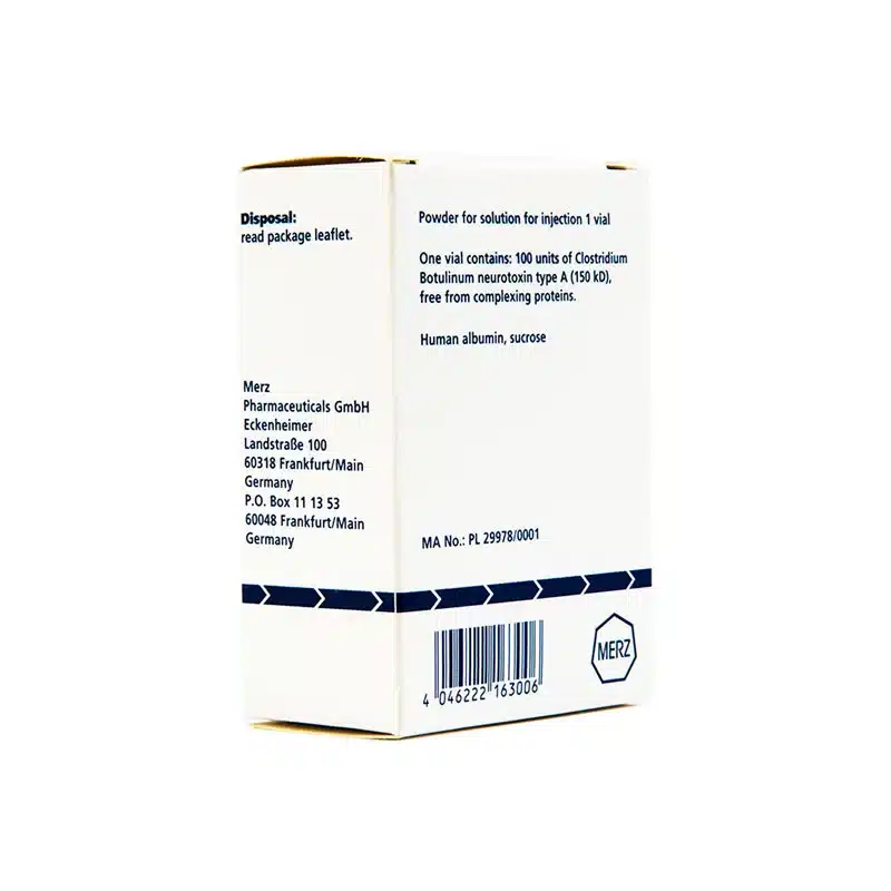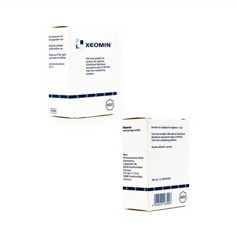 • 1 glass vial containing 100 Units of XEOMIN (powder form)
